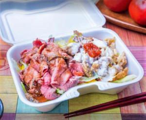 メインメニューは【チキンオーバーライス】【ローストビーフ&チキンオーバーライス】【ローストビーフ丼】で、