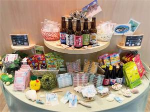 店内には石垣島ビールやサーターアンダギー、石垣島月桃が入ったスキンケアセットなど
