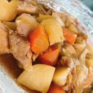 長時間かけて煮込んだタレが、肉との相性抜群です꒰ ∩´∇ `∩꒱