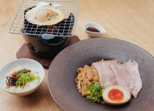 麺は自家製麺で白玉粉と全粒粉を配合した、